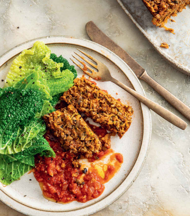 This fibre-rich vegetarian loaf has a wonderfully moist texture and savoury flavour, thanks to lentils, grated halloumi, and fresh herbs. It’s delicious served hot or cold in slices.