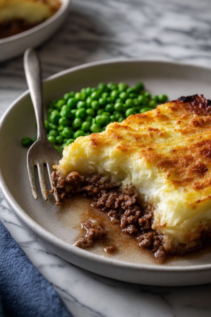- Serve: While the pie is grilling, boil the peas for 3-4 minutes, then drain and stir in the butter. Serve the cottage pie hot with the buttered peas.