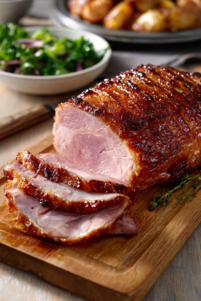 Yes. For an all-roasted method, place the soaked (if necessary) gammon in a roasting tin, cover tightly with foil, and bake at 350°F (180°C) for about 2.5 – 3 hours. Then, remove the skin, score, glaze, and return to a hotter oven (400°F/200°C) for the final 30 minutes.