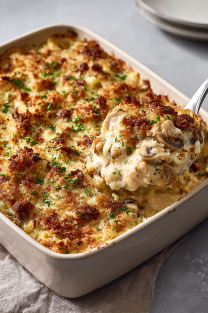 - The water chestnuts add a classic, delightful crunch to the creamy casserole.