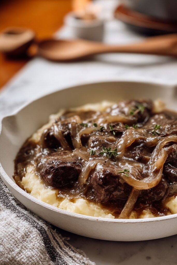 - Serve: Season with additional salt and pepper if needed. Serve hot with creamy mashed potatoes.